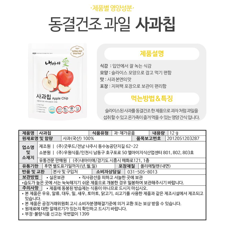 逢星期五截單,一星期到貨 💰29/包,10包包智能櫃 ✅4種不同口味 ✅100%天然純水果 ✅冷凍乾燥技術去除水分,同時保留味道和營養(負40°真空快速冷凍乾燥的最先進方法) ✅國產水果 (進口有機香蕉) ✅易於抓握的水果 (草莓片:🍓形狀/🍎蘋果片、🍐梨片、🍌香蕉片:片狀) 果乾確保7個 ❌ ❌不含麵粉 ❌不含全脂奶粉 ❌不含人造色素 ❌不含油份 ❌不含合成甜味劑 ❌不含防腐劑 ❌不含化學調味料 有4個味:士多啤梨🍓/蘋果🍎/香蕉🍌/梨🍐 📌每包12g 📌10個月起可食用 📌Made In Korea
